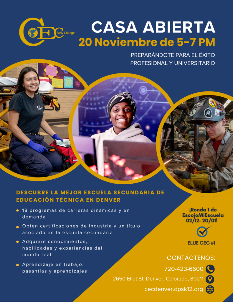 Ya sea que la meta de tu estudiante sea una universidad de 4 años, un colegio comunitario, una certificación técnica o entrar directamente a un trabajo, CEC abre puertas a las oportunidades para el futuro.